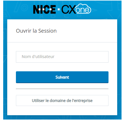 Si laUnité commerciale ID est reçu dans l’URL utilisée pour votreCXone Mpower système, la page d’authentification n’affichera pas leUtiliser le domaine de l’entreprise bouton.