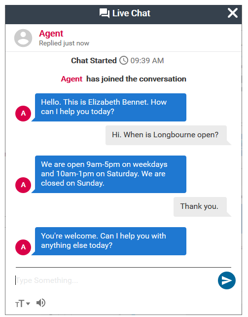 Interface de clavardage client détecte les paramètres de langue par défaut du navigateur, permettant au contact et à l’agent de communiquer à l’aide d’une myriade de langues et d’alphabets différents. Si la langue du navigateur d’un contact est définie sur un dialecte local, sa langue de clavardage par défaut est la langue parente du dialecte, avec plus de 20 langues prises en charge.