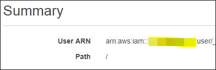 4. Ouvrez un utilisateur existant. Copiez l’ID du compte à partir de ARN utilisateur. Reportez-vous à la zone en surbrillance sur l’image suivante pour vous guider.