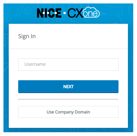 CXone Mpower 시스템에 사용된 URL에서 사업부 ID가 수신되면 인증 페이지는 회사 도메인 사용 버튼을 표시하지 않습니다.