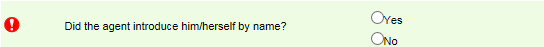 Responses appear on the form as circular buttons displayed in a vertical column. Vertical button questions can be designated as bonus or critical. This example shows a question with response values of Yes or No.