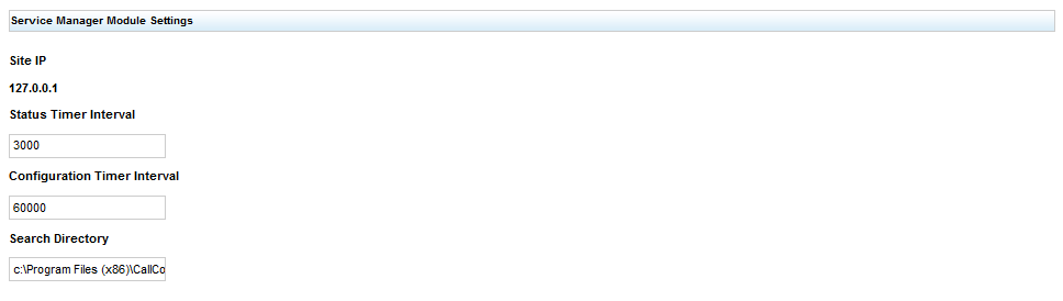 | Configuration Timer Interval | Specifies in milliseconds the frequency at which the Service Manager reloads its settings. The default value is 60000 (60 seconds). |