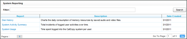 Your NICE Uptivity system offers system reporting options in two areas. The System Reporting section under Printable Reports provides historical data that relates to usage of the NICE Uptivity software and the status of the system and software.